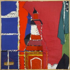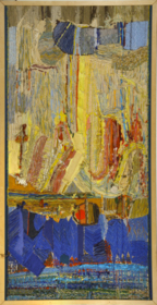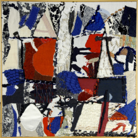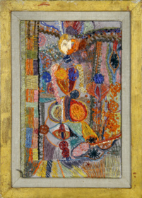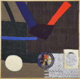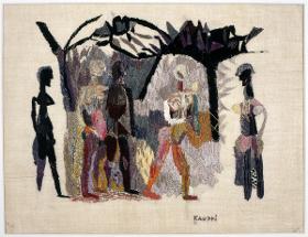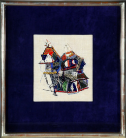 Sten Kauppi förknippas med kraftfulla, färgstarka bildvävar men utförde också detaljrika broderier som skimrar likt smycken. Han är en av de stora förnyarna av broderiet i Sverige under 1900-talet och har inspirerat många kollegor till att tänja gränserna för hur ett broderi kan ses ut både vad gäller material, storlek och komposition. I många verk arbetade han fritt med trasor, rep och snören i en teknik som kan uppfattas som ett mellanting mellan broderi och inplock.