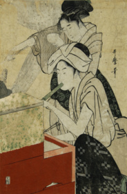 Kitagawa Utamaro är en av Japans mest kända ukiyo-e-konstnärer och särskilt berömd för sina kvinnoskildringar, så kallade bijinga. Han var verksam i Edo (dagens Tokyo) från 1770-talet fram till sin död och skapade över 2 000 verk, främst träsnitt men också teckningar och målningar.