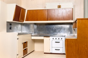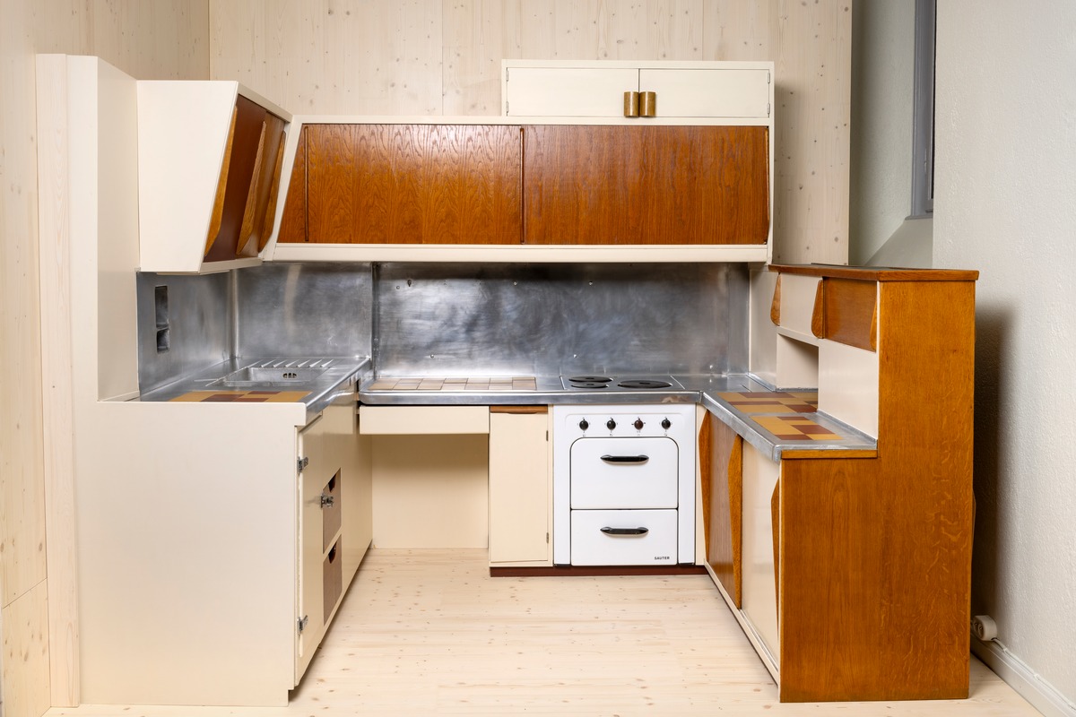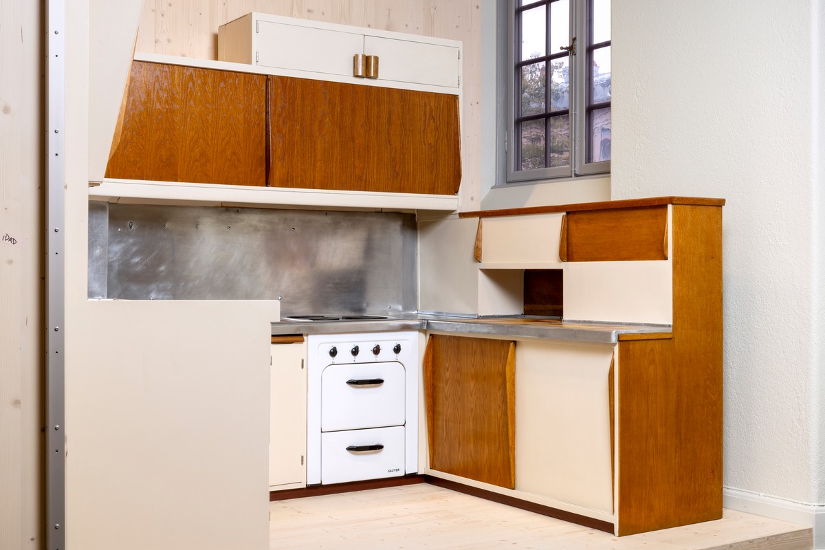 En komplett köksinredning av den fransk-schweiziske arkitekten Le Corbusier. Le Corbusier (1887–1965) räknas allmänt som en av modernismens mest inflytelserika arkitekter och teoretiker. Sina radikala idéer om arkitektur och det nya moderna livet omsatte han i allt från privata villor till stora flerfamiljshus och utopiska planer för hela städer. På Röhsska museet är vi stolta att kunna presentera ett komplett kök från Le Corbusiers mest berömda byggnad Unité d’Habitation, i Marseille uppfört 1947–1952. Åren efter andra världskriget var det svåra år på kontinenten, där behovet av bostäder var stort. Unité d’Habitation var ett radikalt arkitektoniskt och socialt projekt som hade sitt ursprung i Le Corbusiers visionära stadsplaner från 1920-talet. Det bestod av jättelika bostadsblock med plats för över 1 600 boende, där var och en i princip skulle fungera som en självförsörjande stad. Till en början formgav Le Corbusier sällan inredningarna i sina byggnader utan använde standardmöbler från till exempel Thonet eller amerikanska kontorsmöbler.