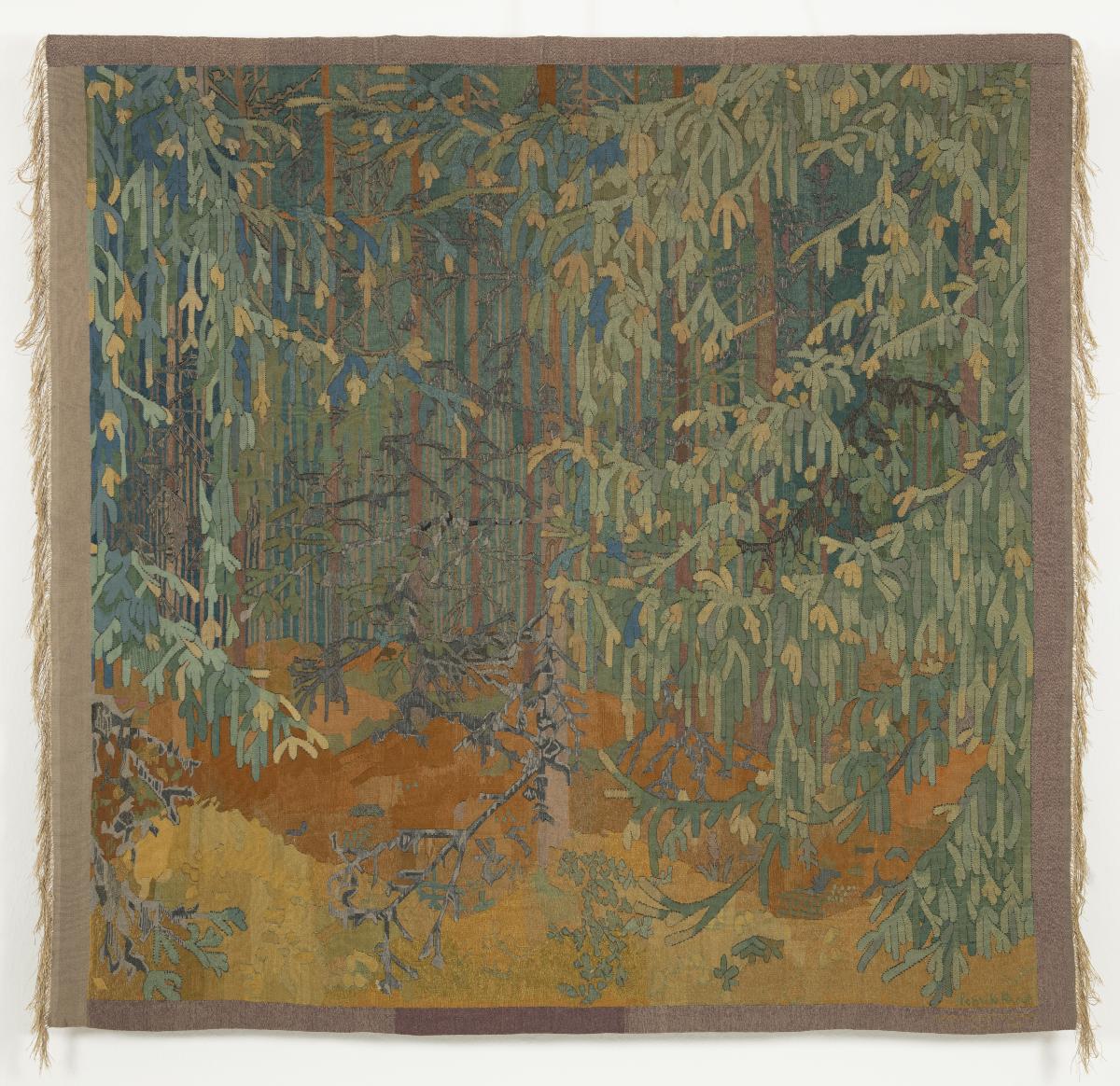Gobelängen är komponerad av Henrik Krogh och vävd i Märta Måås-Fjetterströms ateljé 1911. Varpen består av tvinnat lingarn med 40 trådar på 10cm. Inslagen är av tunt ullgarn i gröna, bruna och blå toner.