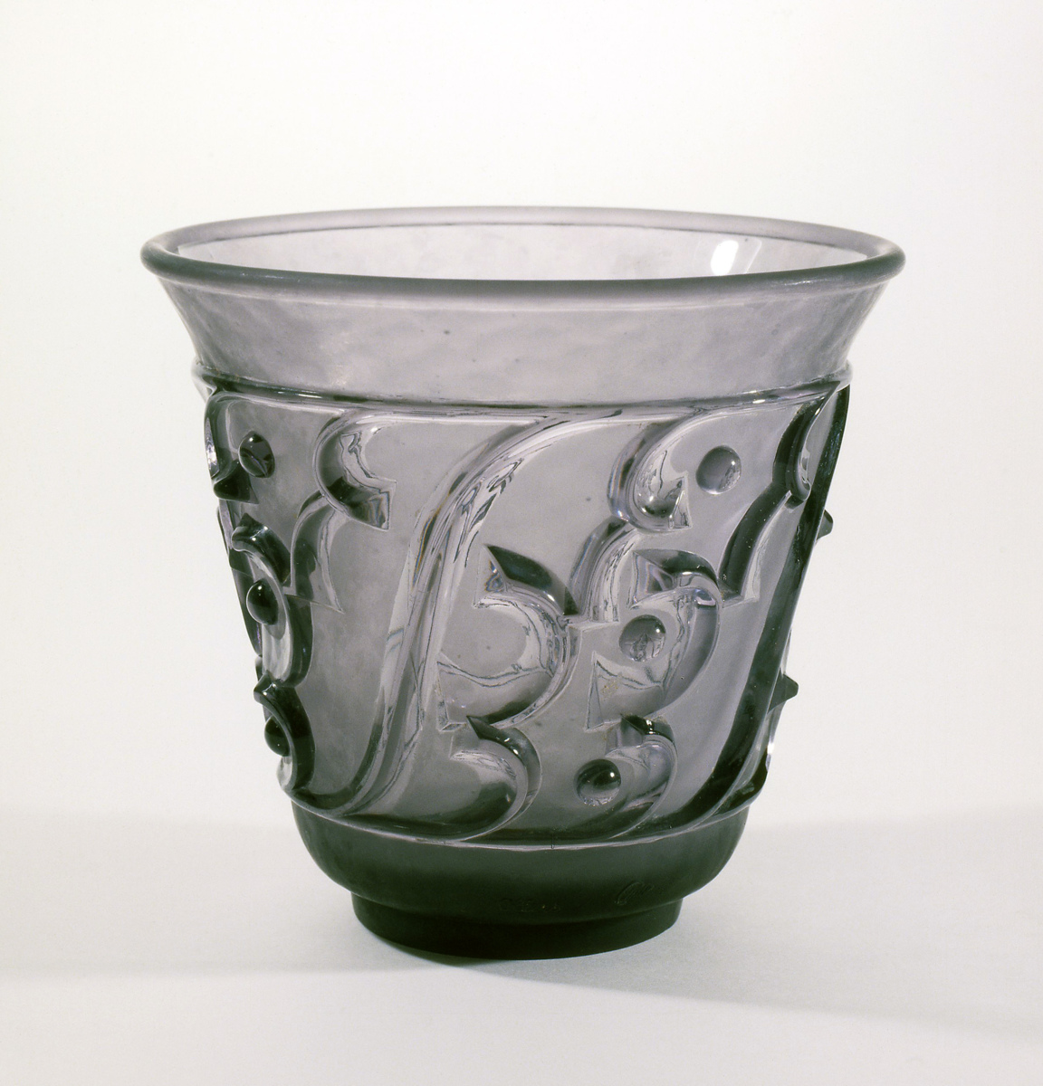 Tillbaka till sökningLägg till i min samlingSkriv utKopiera länk© Edvin OllersFöremålVasEdvin Ollers (1888 - 1959) Elme glasbruk (1917 - 1970)Pressat glas15,80 cm Diameter: 17,3 cm cm1928RKM 210-1974InköptVerket är inte utställtBeskrivningViolett glas med pressad dekor. Den upphöjda reliefen i blankt glas medan botten är matt.