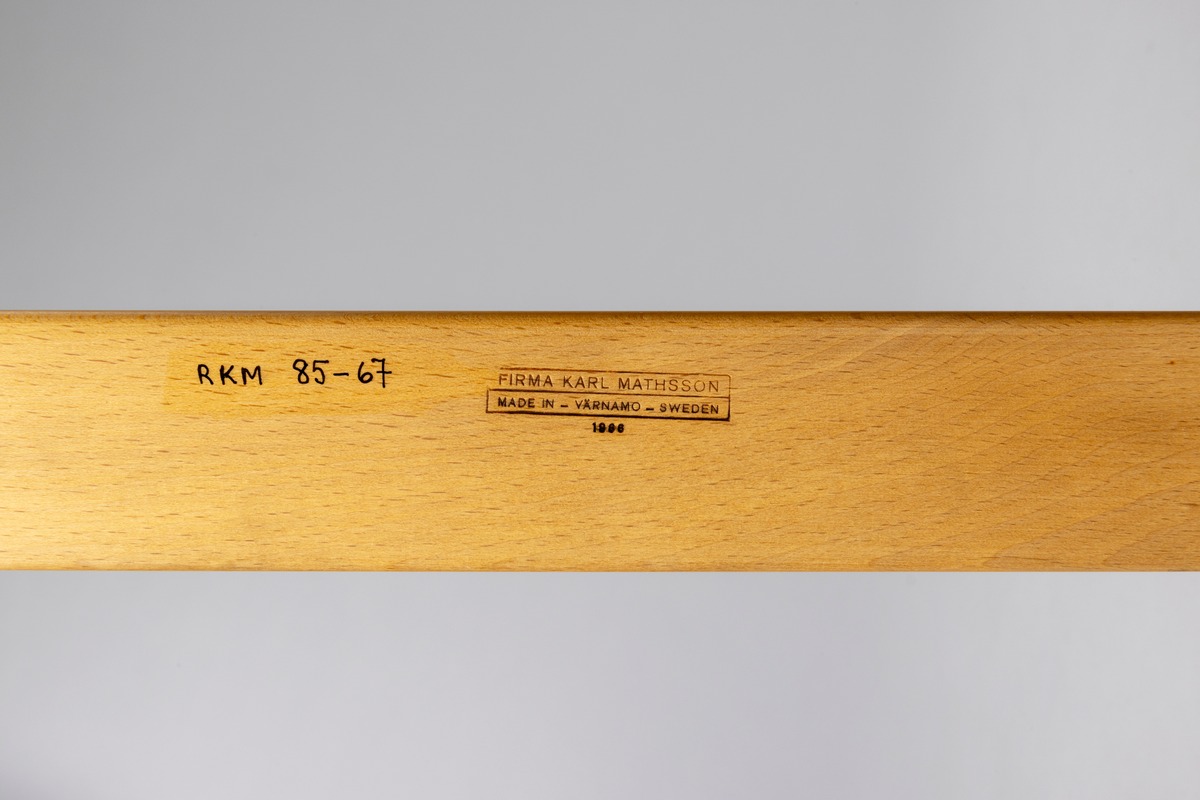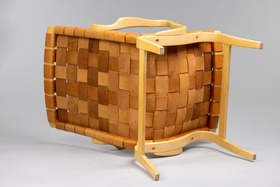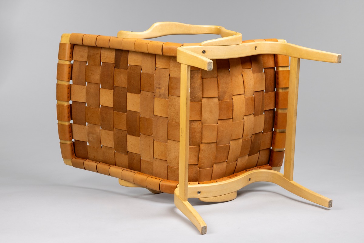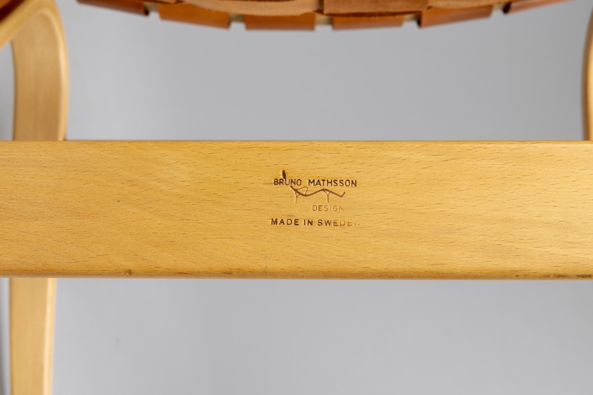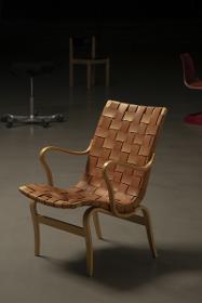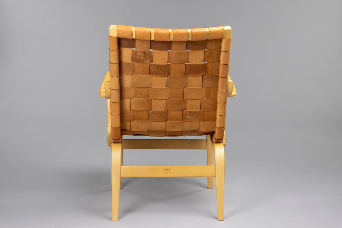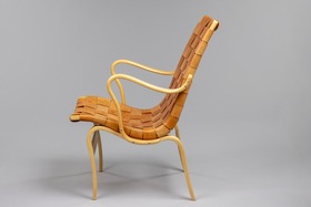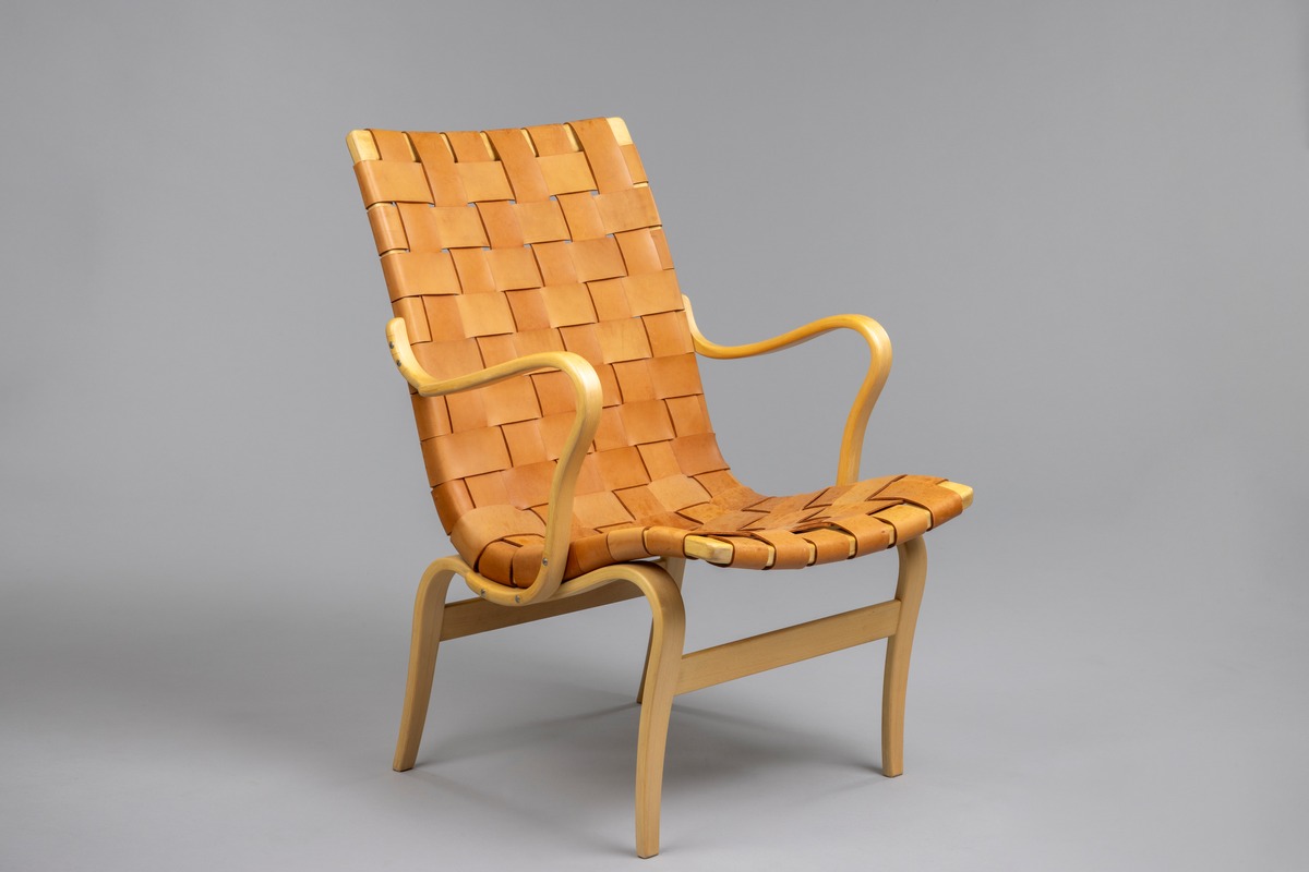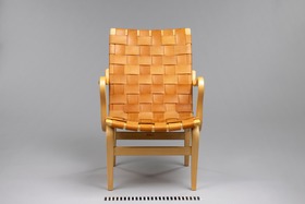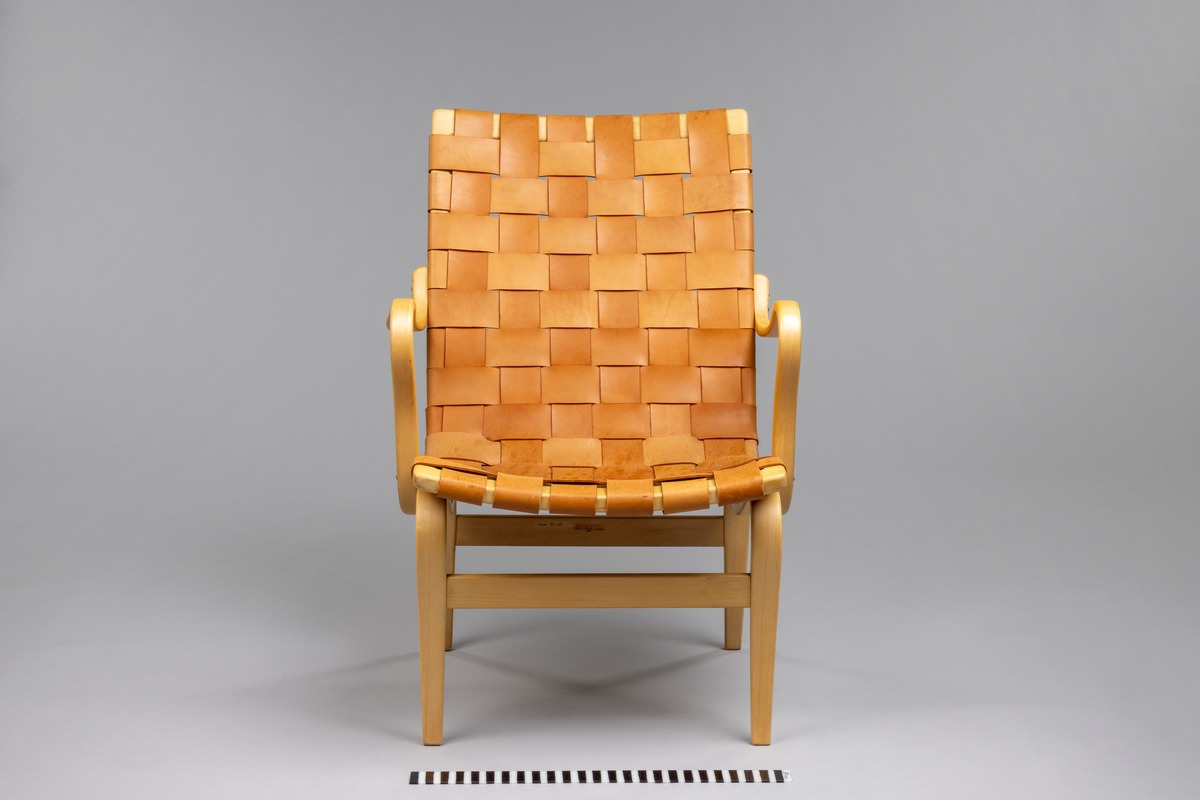 Karmstol i ljust böjträ med flätade oxhudsremmar av den svenske formgivaren Bruno Mathsson formgiven 1941. Bruno Mathsson är en av Sveriges internationellt mest kända formgivare. Han fick sitt genombrott med möbler i böjträ under slutet av 1930-talet. Redan 1936 hade Bruno Mathsson sin första separatutställning på Röhsska museet och året efter deltog han i världsutställningen i Paris. Bruno Mathsson var intresserad av funktionalismen och gjorde ergonomiska studier av sittandet. I museets samling finns många av de stolar och fåtöljer som han formgivit men kanske är denna stol en av de mest populära modellerna, som är i fortsatt produktion nästan 80 år efter att den först lanserades.