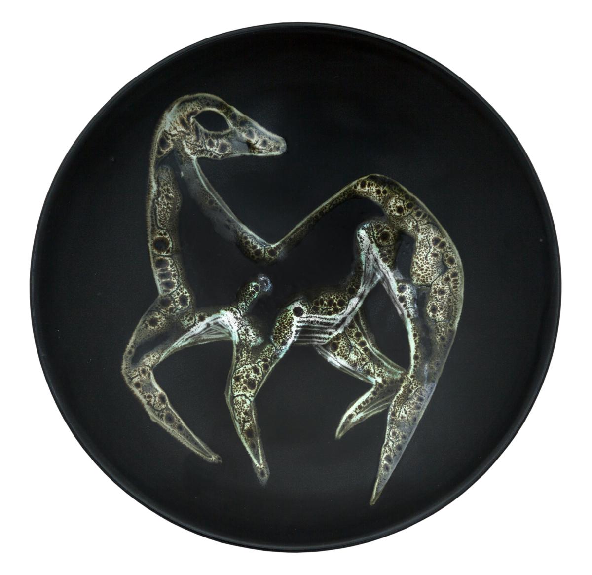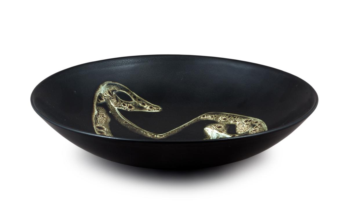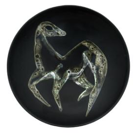 Tillbaka till sökningLägg till i min samlingSkriv utKopiera länkFöremålSkålLillemor Mannerheim (1927 - 1994) Gefle porslinsfabrik (1910 - 1979)Svartglaserat flintgods6,10 x 25,40 cmSverige, 1953RKM 26-1953Inköpt till Röhsska museetVerket är inte utställtBeskrivningSkål av svartglaserat flintgods, invändigt dekorerad med ett fyrfotadjur i vitt grönt och brunt. Signerad: Lillemor