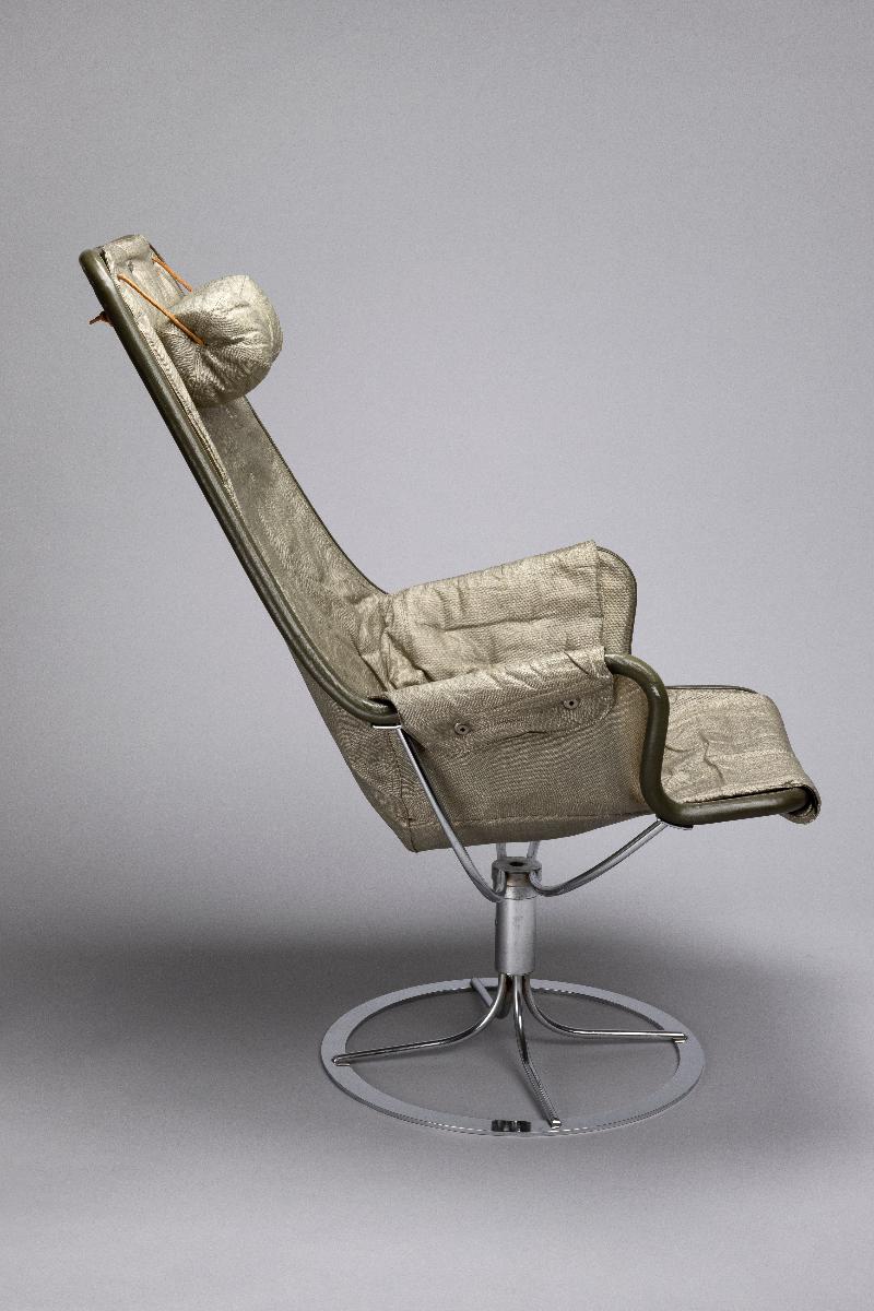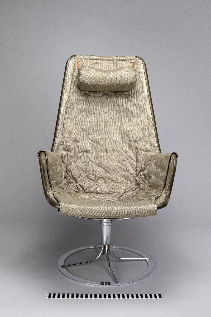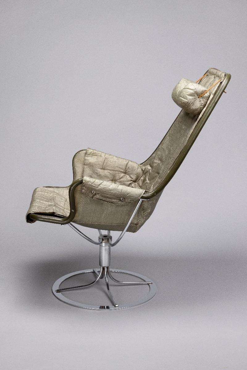 Bruno Mathsson är en av de riktigt stora i den moderna svenska möbelhistorien. Röhsska museet spelar en inte obetydlig roll i Mathssons karriär. Det var genom möbeltidningar lånade från Röhsska museets bibliotek han hämtade inspiration till sina tidigaste arbeten. Det var också på museet han fick sitt stora genombrott som formgivare med den första sepatatutställningen 1936. Med blicken stadigt riktad framåt mot den förmodade rymdåldern ritade Bruno Mathsson 30 år senare fåtöljen Jetson. Den presenterades på Röhsska konstslöjdmuseet som till sitt 50-års jubileum bjudit in Bruno Mathsson för en retrospektiv utställning. Tre år senare, 1969 kom en ny variant av fåtöljen, nu med armstöd och ny stoppning. Den blev en av Dux mest sålda stolar och en klassiker i svensk formhistoria. Fåtöljen är en gåva från tillverkaren Dux möbler AB i Trelleborg och registrerades in i museets samlingar 1971.