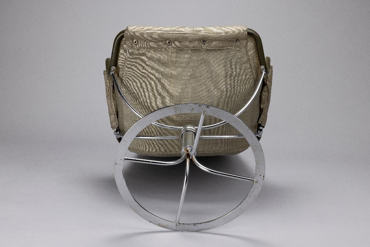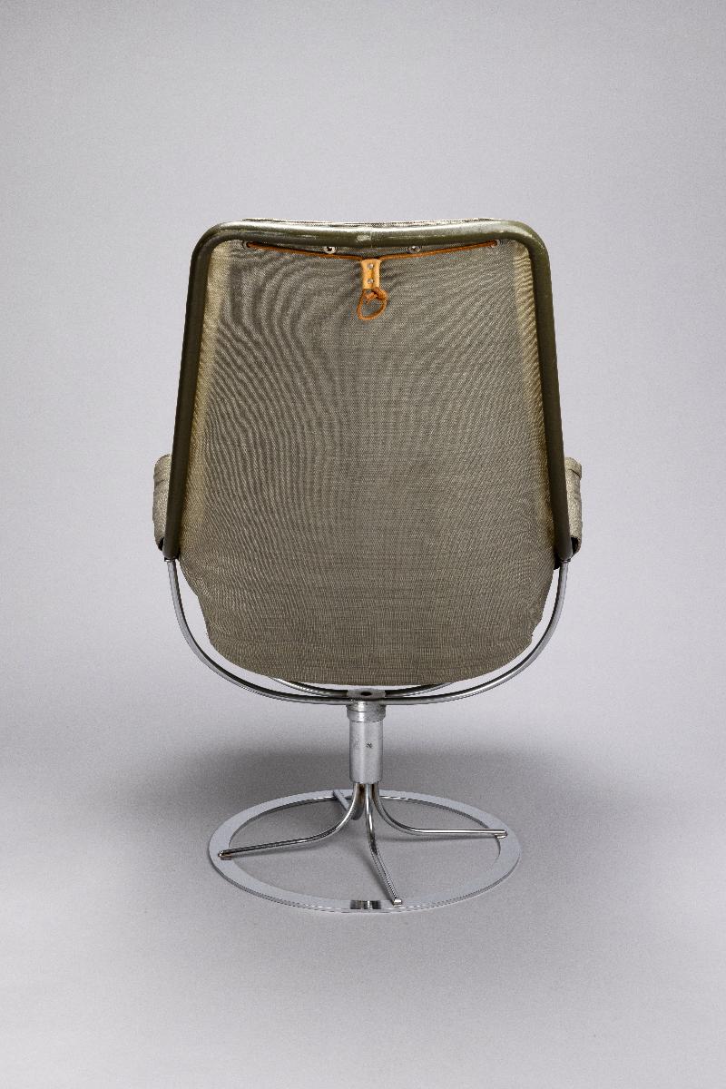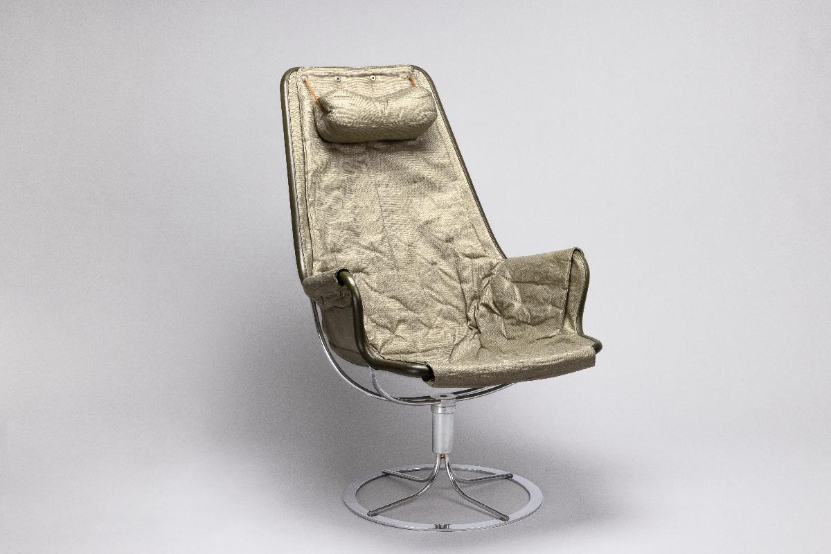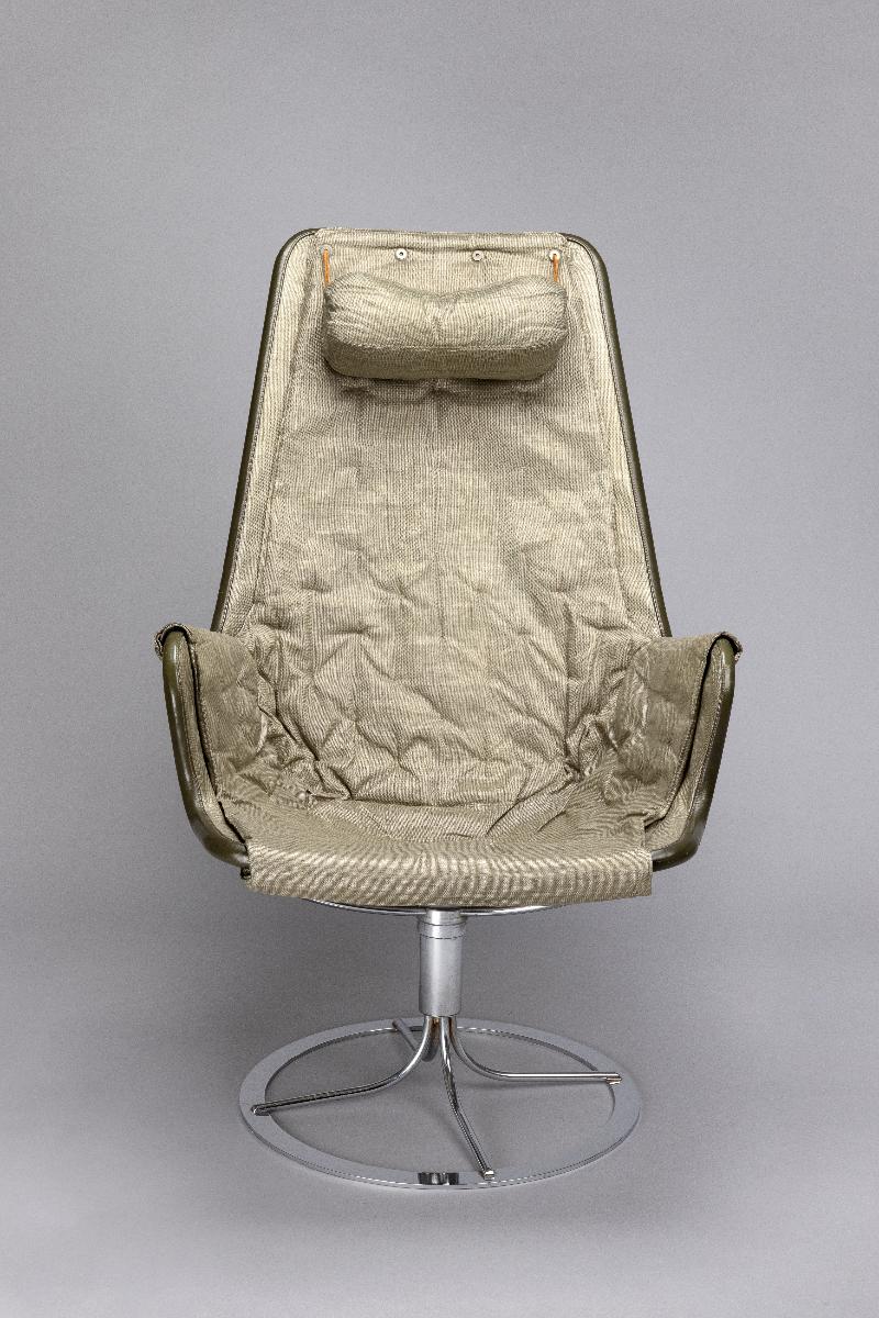 Bruno Mathsson är en av de riktigt stora i den moderna svenska möbelhistorien. Röhsska museet spelar en inte obetydlig roll i Mathssons karriär. Det var genom möbeltidningar lånade från Röhsska museets bibliotek han hämtade inspiration till sina tidigaste arbeten. Det var också på museet han fick sitt stora genombrott som formgivare med den första sepatatutställningen 1936. Med blicken stadigt riktad framåt mot den förmodade rymdåldern ritade Bruno Mathsson 30 år senare fåtöljen Jetson. Den presenterades på Röhsska konstslöjdmuseet som till sitt 50-års jubileum bjudit in Bruno Mathsson för en retrospektiv utställning. Tre år senare, 1969 kom en ny variant av fåtöljen, nu med armstöd och ny stoppning. Den blev en av Dux mest sålda stolar och en klassiker i svensk formhistoria. Fåtöljen är en gåva från tillverkaren Dux möbler AB i Trelleborg och registrerades in i museets samlingar 1971.