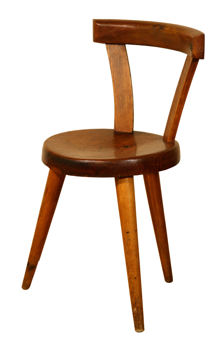 Stolen, Chaise tripode en bois, som ritades 1947, har hämtat inspiration från lantliga stolar med tre ben. Sådana stolar har bland annat används i stall och ladugårdar, de tre benen gör att de står stabilt även på ojämna underlag. Den trebenta stolen användes i Le Doron Hotels gästrum, allmänna utrymmen samt i nattklubben Shangri-La, som var inrett i ett gammalt stall. Röhsska museets stol har sits och rygg av furu, ben av ask.