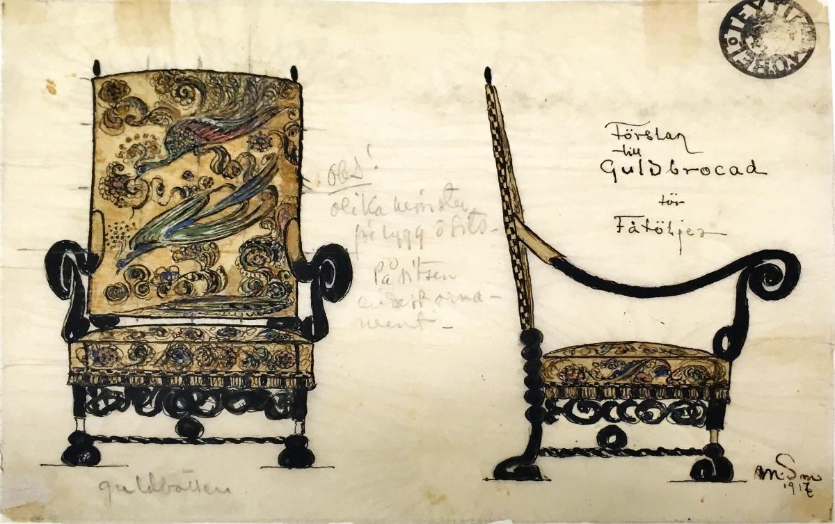 Tillbaka till sökningLägg till i min samlingSkriv utKopiera länkMaja Sjöström skiss till möbelklädsel © Maja SjöströmMaja Sjöström, förslag fåtölj guldbrokad © Maja SjöströmMaja Sjöström skiss till möbelklädsel © Maja SjöströmMaja Sjöström, förslag fåtölj guldbrokad mönster Pavone med påfågel © Maja SjöströmMaja Sjöström skiss, Venecia 1917 © Maja SjöströmMaja Sjöström skiss till möbelklädsel © Maja SjöströmMaja Sjöström, förslag fåtölj guldbrokad © Maja SjöströmFöremålSkissMaja Sjöström (1868 - 1961)1917RKM 16-1953Inköpt 1953Verket är inte utställtBeskrivning5 skisser till möbelklädsel, draperier med mera för Stockholms stadshus, utförda av textilkonstnär Maja Sjöström i början av 1920-talet.