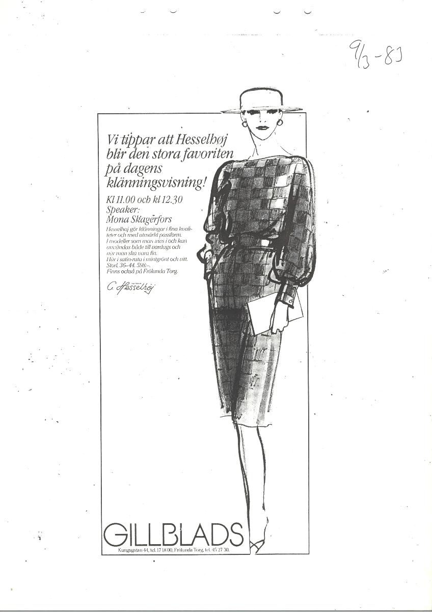 Printad utskrift med illustration från RKM 25:39-1-2019 placerad i färdig layout med text och logotype för Gillblads.
