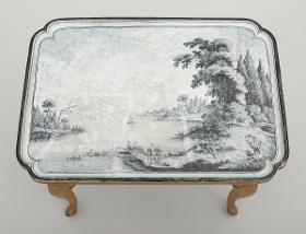 Tillbaka till sökningLägg till i min samlingSkriv utKopiera länkBild från katalogkort, brickan ovanifrånBild från katalogkort, bordetFöremålTebordStralsunds fajansfabrik (1757-1790)Skulpterad bok och glaserad och bemålad fajans55,20 x 79,30 cm Fajansskiva 75,80 cm Bord1770RKM 161-1928Inköpt 1928Verket är inte utställt