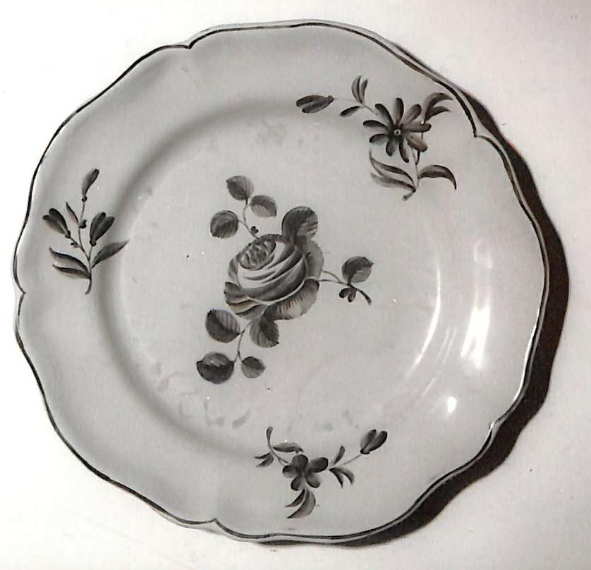 Tallrik i vitglaserad fajans med målad blå blomsterdekor.