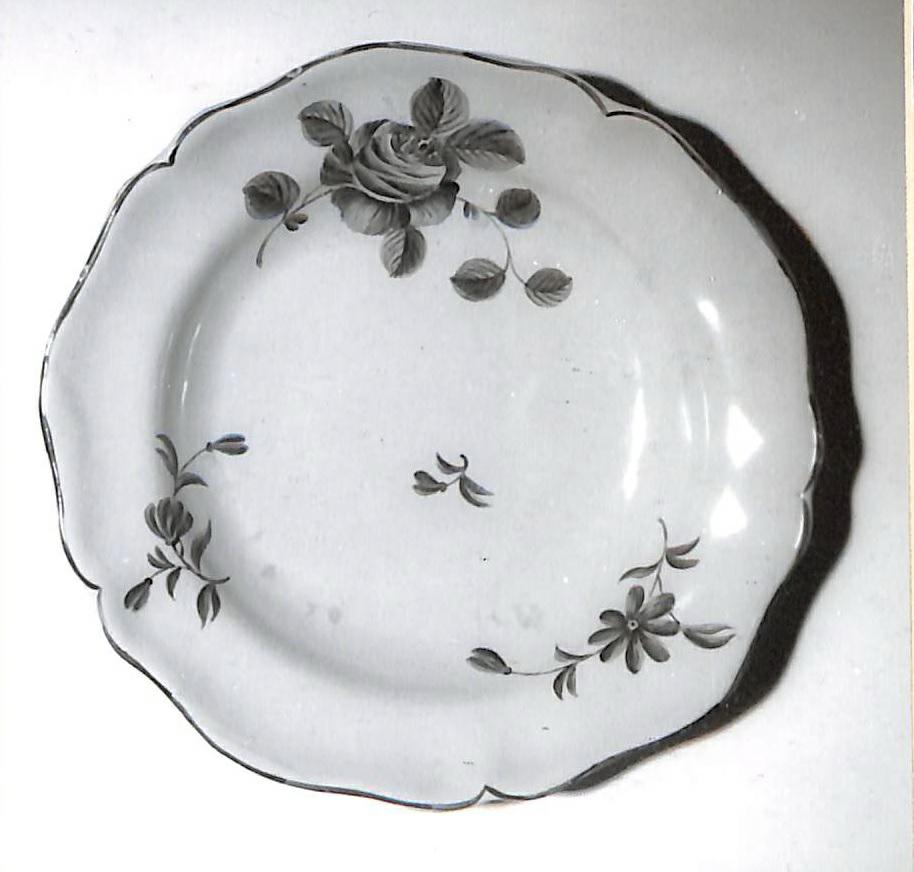 Djup tallrik i glaserad fajans med blå dekor. Tillverkad under Ehrenreichs tid och målad av Anders Halldin.