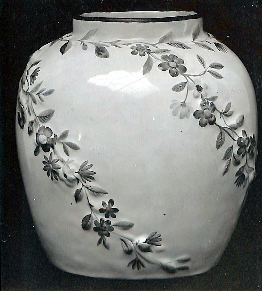 Potpurriurna i vitglaserad fajans med dekor i färger på svag relief. Tillverkad under Ehrenreichs period och målad av Johan Waltman.