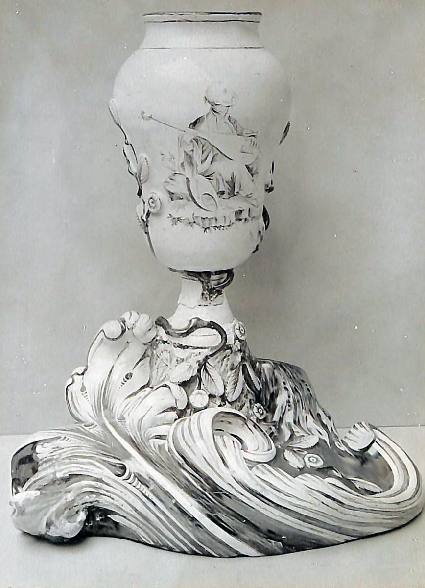 Kaninvas i vitglaserad fajans med dekor i sepiabrunt.
