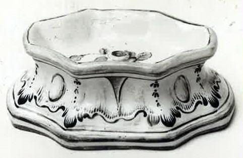 Tillbaka till sökningLägg till i min samlingSkriv utKopiera länkBild från katalogkortFöremålSaltkarMarieberg fajans och porslinsfabrik (1758 - 1788)Glaserad fajans med målad dekorBredd 9,70 cm1768RKM 24-1935Inköpt 1935Verket är inte utställtBeskrivningSaltkar i vitglaserad fajans med målad dekor. Framställd av Mariebergs porslinsfabrik under Pierre Berthevins period 1766-1769.