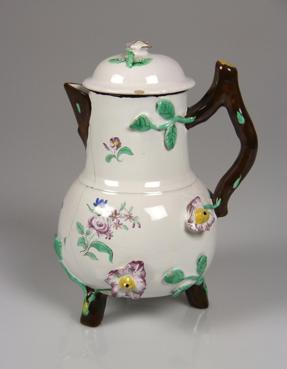 Tillbaka till sökningLägg till i min samlingSkriv utKopiera länkFöremålChokladkannaMarieberg fajans och porslinsfabrik (1758 - 1788)Glaserad fajans med dekor21,20 cm1758 - 1766RKM 3-1919Inköpt 1919Verket är inte utställt