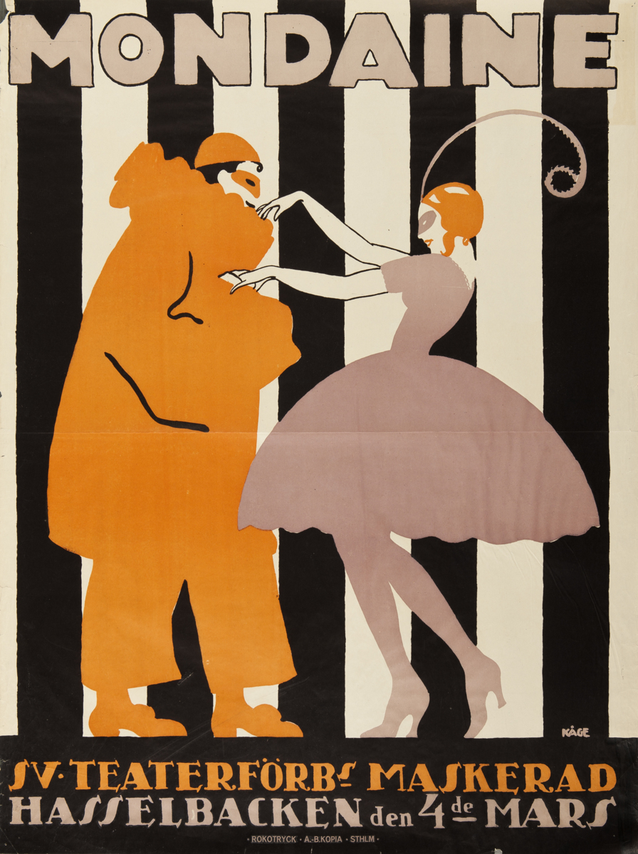Tillbaka till sökningLägg till i min samlingSkriv utKopiera länkHelbild © Wilhelm Kåge/BUS 2014FöremålAffischMondaine. Sv. Teaterförbundets maskerad. Hasselbacken den 4 marsWilhelm Kåge (1889 - 1960) Rokotryck AB KopiaTryck på papper92,50 x 70,00 cmStockholmRKM 36:96-1955Verket är inte utställt