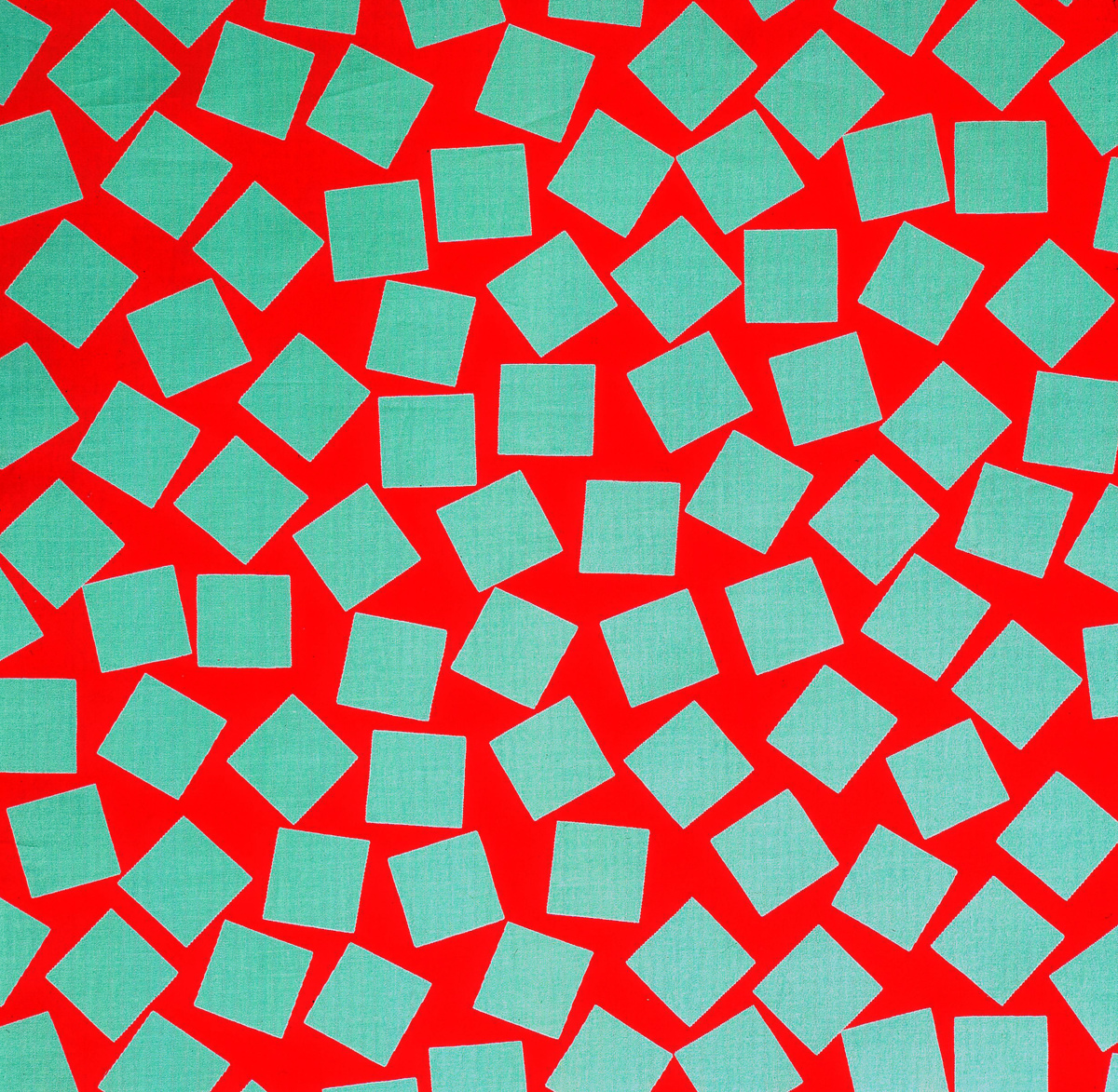 Den brittiske designern George Sowden var en av grundarna till Memphis Group, vars lekfulla estetik har blivit synonym med postmodern design. Trycket "Quadro" är ett typexempel på hans känsla för både färg och form, med ett mönster som består av gröna kvadrater mot en röd bakgrund. Trycket är utfört i klara nyanser och de kontrasterande färgerna får trycket att vibrera.