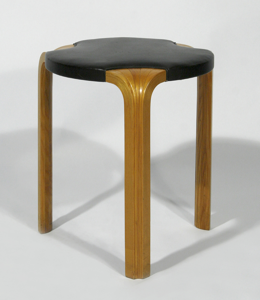Pallen modell X600 formgavs 1954. Den är gjord i lamellimmad ek med solfjäderformade ben och skinnsits. Den finske formgivaren Alvar Aalto arbetade ofta med laminerat trä som gjorde det möjligt att skapa mjuka former.