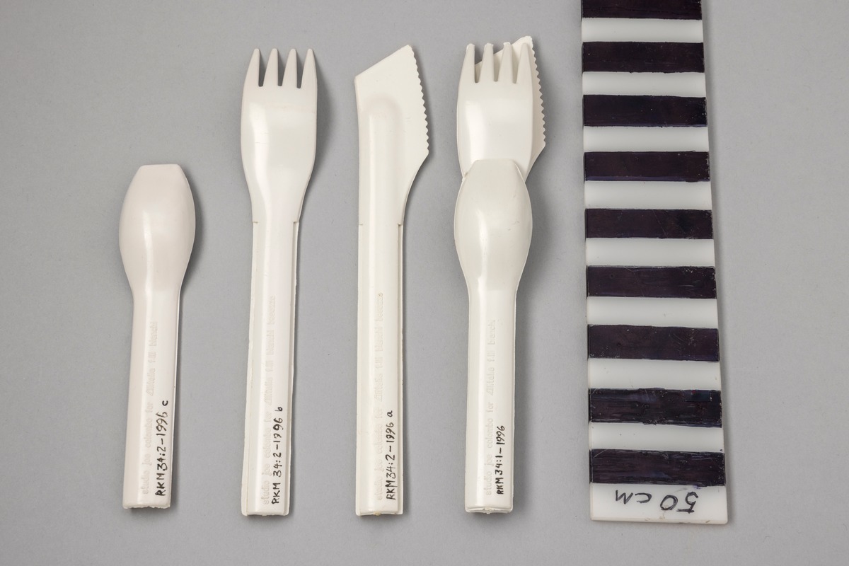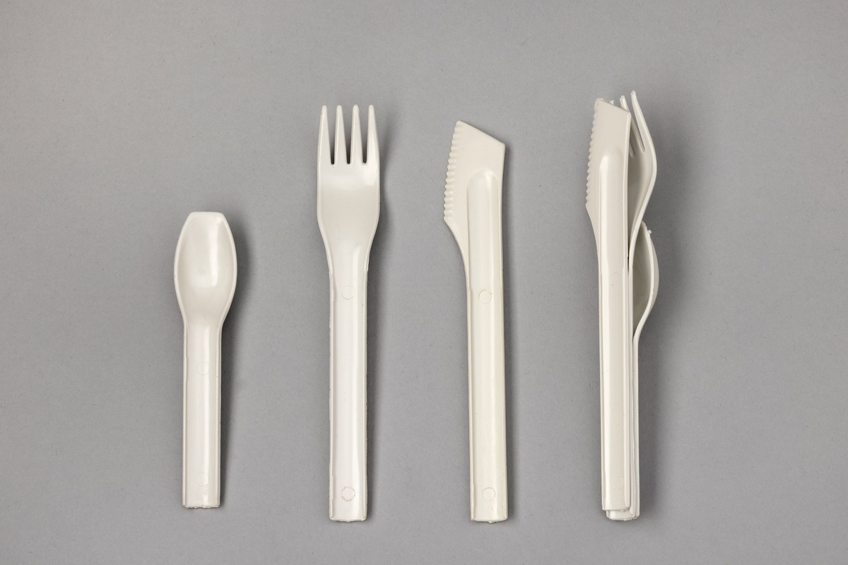 Engångsbestick tillverkade för att passa i varandra. Producerade för Alitalia.