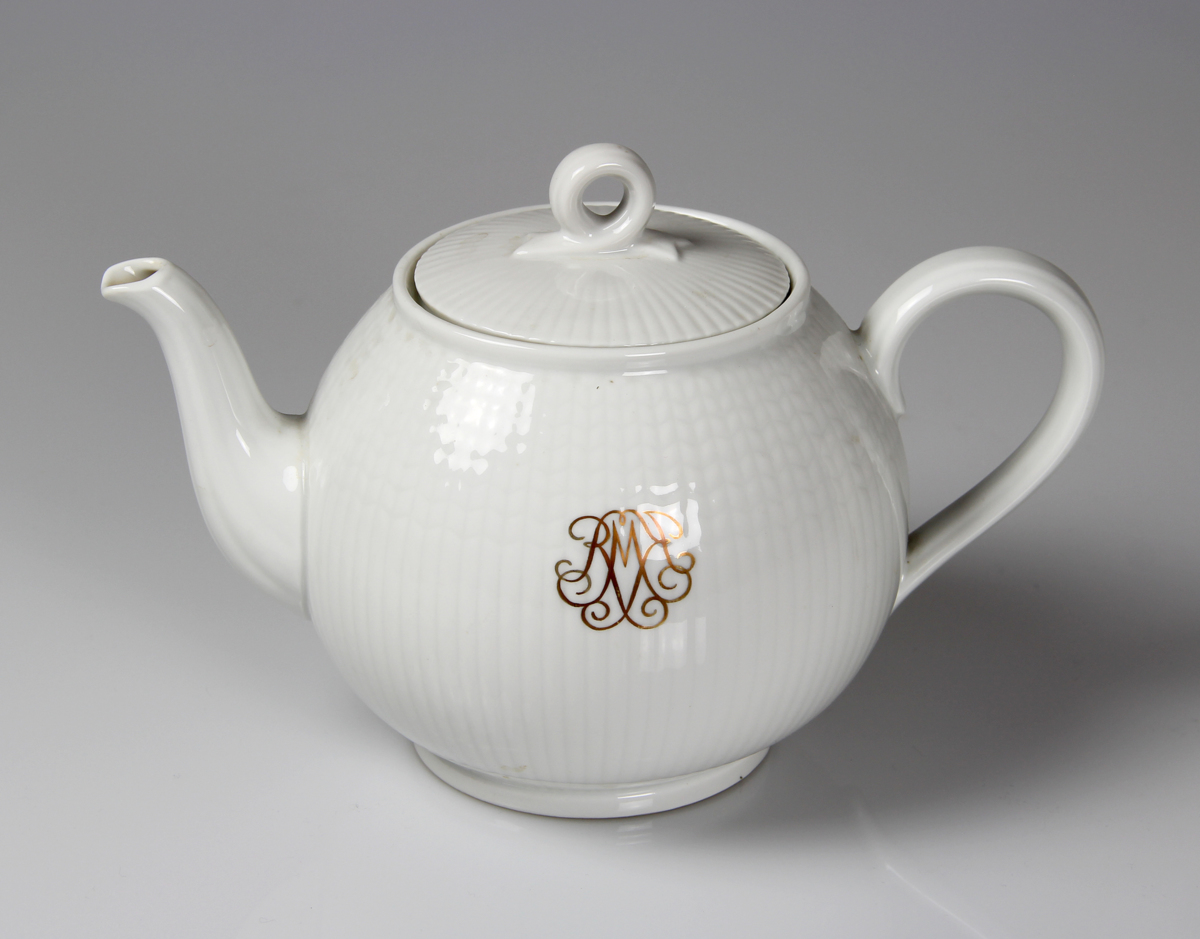 Tillbaka till sökningLägg till i min samlingSkriv utKopiera länkHelbildFöremålTekannaLidköpings porslinsfabrik (1911 - 1943)Porslin14,70 cmLidköpingRKM 37-1996Verket är inte utställtBeskrivningTekanna av porslin med ax-mönster och Röhsska Museets spegelmonogram i guld.