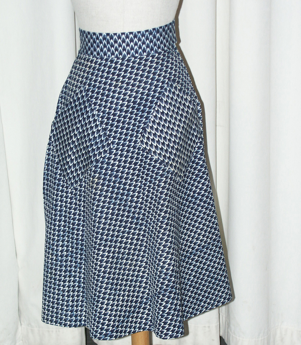 Tillbaka till sökningLägg till i min samlingSkriv utKopiera länkHelbild © Katja GeigerFöremålKjolKatja Geiger (1920 - 2017) Katja of Sweden (*1946)Tryckt bomull80,00 cmSverigeRKM 67-2005Gåva av Tonie LewenhauptVerket är inte utställtBeskrivningKlockad kjol i vitt bomullstyg med tryck i blått. Mitt fram finns två snedställda rektangulära påsydda fickor med öppningen mot sidosömmarna.