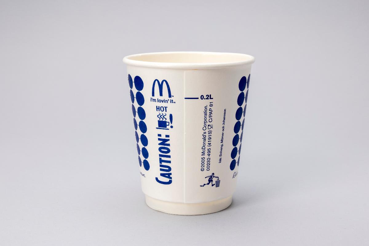 Dekoren "Adam" ritades av Stig Lindberg 1959 och har här använts på en pappmugg för snabbmatskedjan McDonalds. Muggen är en del av "Det moderna kafferepet", ett koncept framtaget av Linda Solvang, Anna Mörner och Anna Johansson. Projektet avslutades med en designtävling där tre vinnande muggmotiv valdes ut i en designtävling för McDonlds, i samarbete med Svensk Form och Gustavsberg.