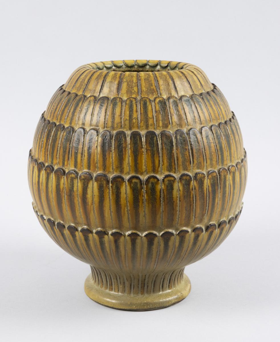 Tillbaka till sökningLägg till i min samlingSkriv utKopiera länk© Wilhelm Kåge/BUS 2014FöremålVasWilhelm Kåge (1889 - 1960) Gustavsbergs porslinsfabrik (*1827)Glaserat stengods22,00 x 20,00 cmFarsta1952RKM 29-1953Gåva 1953 från tillverkarenVerket är inte utställt