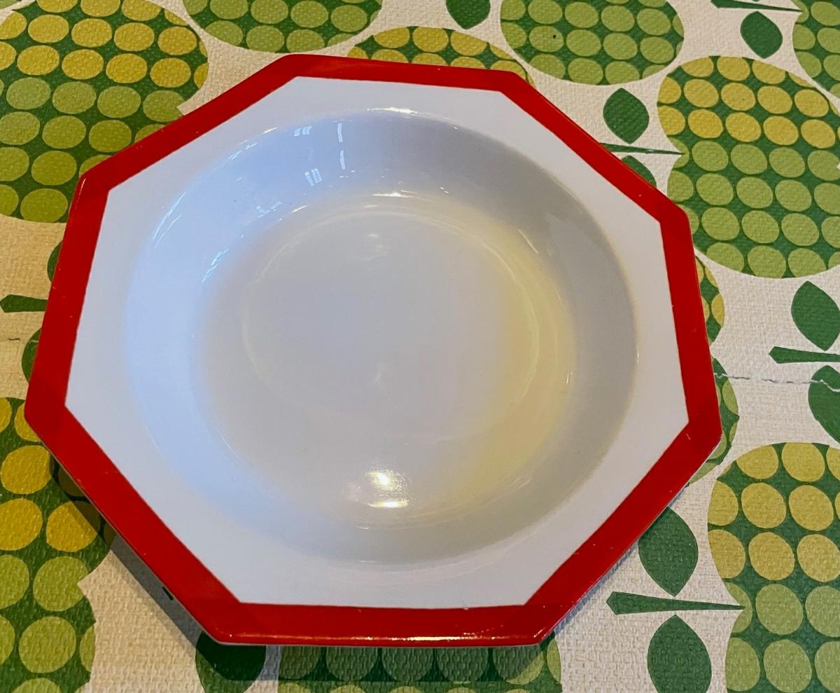 Tillbaka till sökningLägg till i min samlingSkriv utKopiera länk© Karin BjörquistFöremålDjup tallrikRöd kantKarin Björquist (1927-2018) Gustavsbergs porslinsfabrik (*1827)FlintgodsGustavsberg, 1968RKM 231-2003InköptVerket är inte utställtBeskrivningÅttakantig djup tallrik med en röd kant.