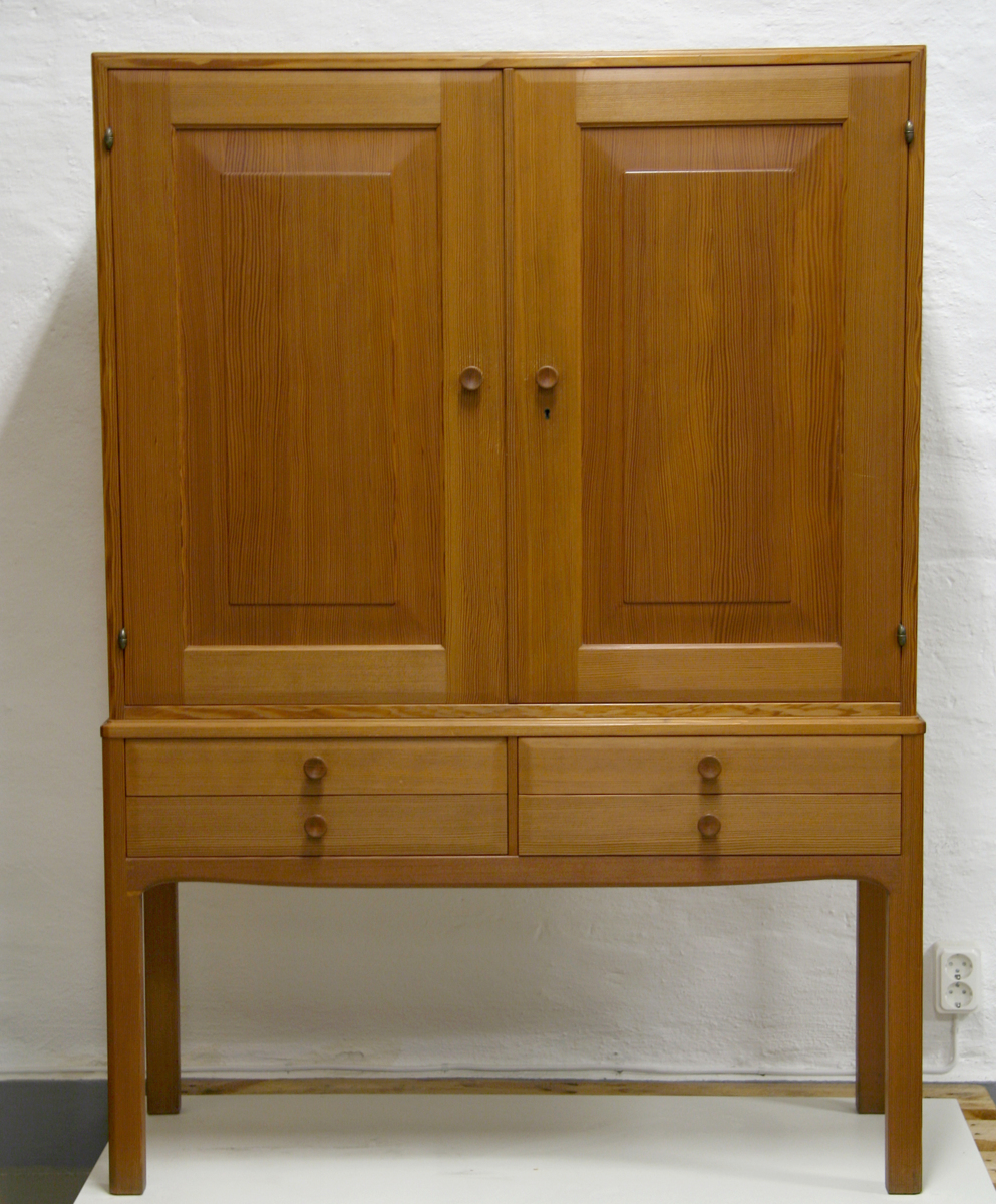 Tillbaka till sökningLägg till i min samlingSkriv utKopiera länkHelbild © Carl MalmstenFöremålSkåpOktoberCarl Malmsten (1888 - 1972) Carl Löfving & sönerDouglasgran141,00 x 102,00 x 40,00 cmTibro, 1951RKM 33-1966InköptVerket är inte utställtBeskrivningSkåp med två dörrar, tre hyllplan samt två sektioener med två lådor vardera.