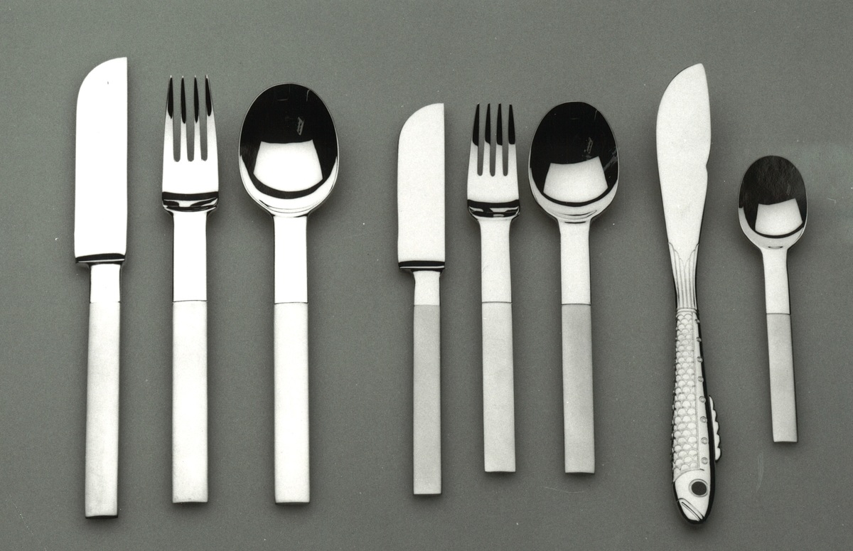 Bestick i 8 delar, i "kontinental" storlek, dvs större än vanliga svenska. Stål av standartyp, matbesticken försilvrade, fiskkniven förgylld och med en liten grön ögonsten i skaftet, dessertbestick och kaffesked förgyllt. Besticken tillverkades i Japan och imporetrades av Älghults glasbruk som ingick i Orreforsgruppen (1992). Besticken ingår i Nobeldukningen, som 1992 belönandes med utmärkelsen Utmärkt Svensk Form.