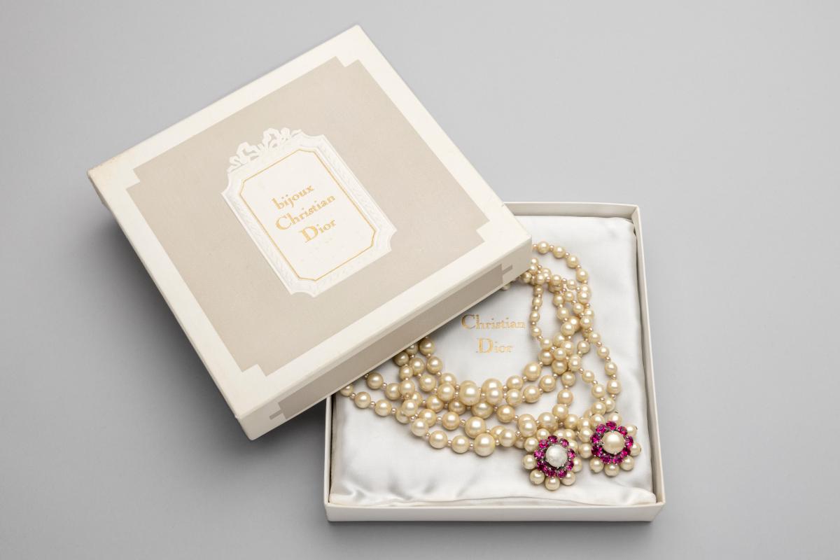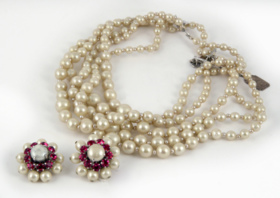 Örhängen med vita pärlor och rosa stenar. Smycket gjordes i en liten exklusiv upplaga.