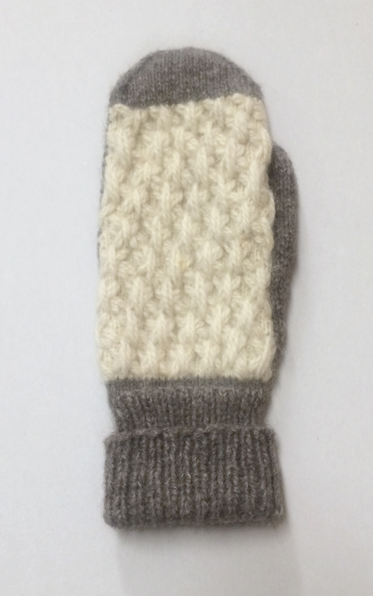 Tillbaka till sökningLägg till i min samlingSkriv utKopiera länkBild från katalogkort © Vera BjurströmFöremålTumvanteVera Bjurström Bohus Stickning (*1939)Slätstickning i ull27,50 cmGöteborg, 1940 - 1949RKM 137-1977Gåva av Föreningen Bohus StickningVerket är inte utställtBeskrivningHandstickad tumvante i grått och vitt ullgarn. Dekorerad med vita broderade stjärnor på ovansidan.