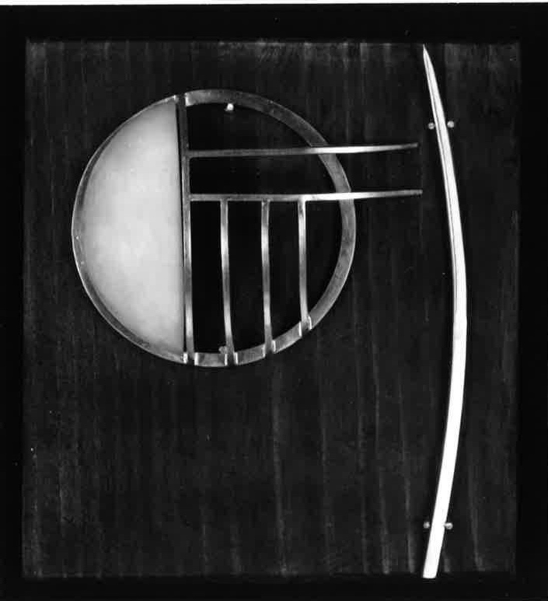 Tillbaka till sökningLägg till i min samlingSkriv utKopiera länkBild från katalogkort © Mona Wallström/BUS 2015FöremålBrosch, HårsmyckeVit kvinnaMona Wallström (*1956)Silver och taguanötGöteborg, 1987RKM 29-1987Verket är inte utställtBeskrivningSmycke i två delar. Rund kupad smyckeplatta med silverbågar och infälld halvmåneformad vit taguanöt. Böjd fästpinne av silver.