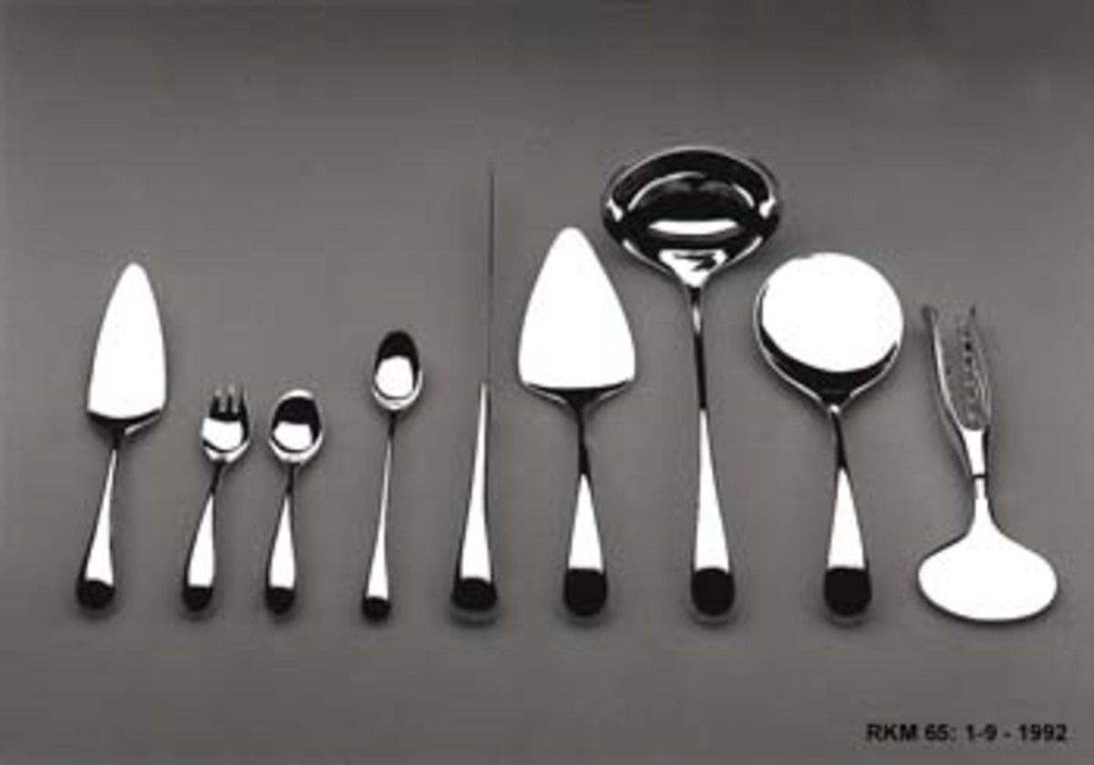 Tillbaka till sökningLägg till i min samlingSkriv utKopiera länkBild från katalogkort © Vivianna Torun Bülow-HübeFöremålBestick, BordssilverTorunVivianna Torun Bülow - Hübe (1927 - 2004) Dansk International Design LtdPläter och rostfritt stålJapan, 1984 - 1986RKM 65-1992Gåva av Vivianna Torun Bülow - HübeVerket är inte utställtBeskrivningMatbestick av pläter och rostfritt stål.