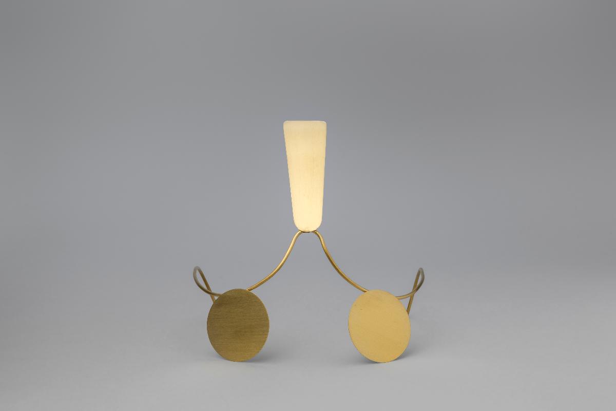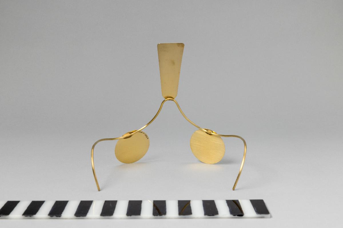 Ewa Nowaks ansiktsmask/smycke i guldpläterad mässing förhindrar ansiktsigenkänning av övervakningskameror.