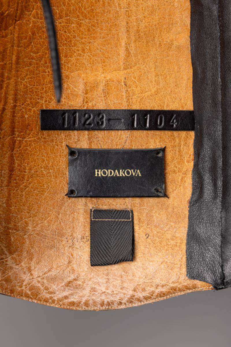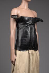 Korsett tillverkad av återvunna ridstövlar, omvandlad till en exklusiv topp.