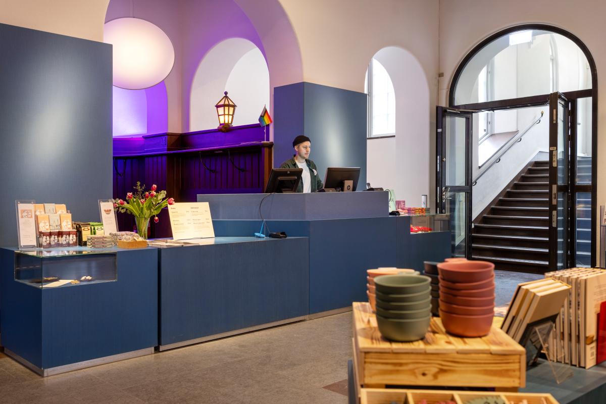 Tillbaka till sökningSkriv utKopiera länkVåning 3Våning 2Våning 1EntréplanAuditorietReceptionenI receptionen finns all information som behövs inför ett besök i museets utställningslokaler. Här startar våra guidade visningar samt våra museilektioner.